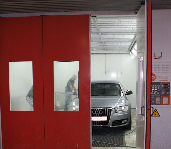 - покраска в своевременно обслуживаемой современной итальянской покрасочной камере, использование очищенного системой обезвоживания и масловлагоотделителями воздуха, позволяет соблюдать технологию нанесения покрытий и избегать брака в виде вкраплений пылинок и капелек влаги.